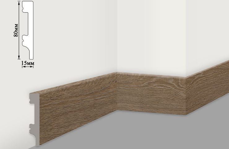 Плінтус дюрополімерний(80x15x2500 мм UMI 8015P (14133-27) (ціна за м/пог.)