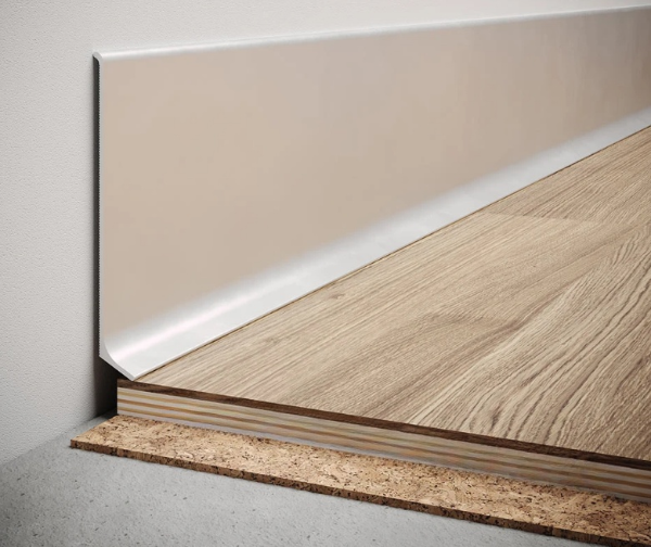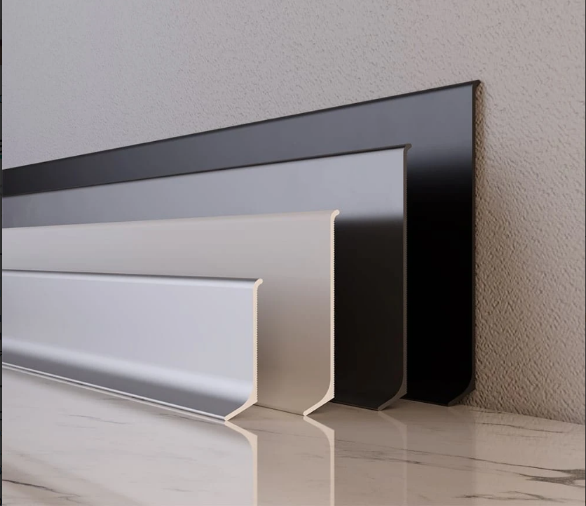Вишуканий алюмінієвий плінтус, створений для довговічного використання та надання інтер'єру стильного й вишуканого вигляду. Його висока міцність дозволяє встановлювати його навіть у приміщеннях з інтенсивним рухом і підвищеною вологістю.